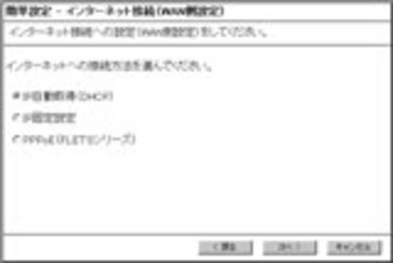 NTT東西のフレッツシリーズなど「PPPoEを使う」、Yahoo! BBのようなDHCPを使う、固定IPを設定するなど、有線部分は特に変わった項目はない。有線部分の詳しい説明は割愛しよう。