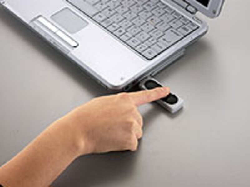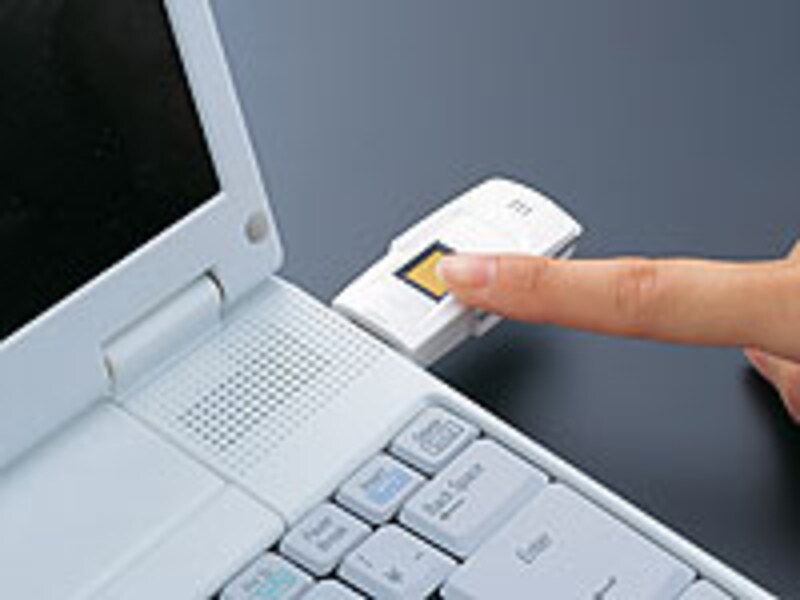 認証が不要な64MBの「ノーマル領域」も備えるUSBフラッシュメモリー。128MBモデルから1GBモデルまで用意しており、実売価格は128MBモデルが1万2000円、256MBモデルが1万5000円、512MBモデルが2万1000円、1GBモデルが3万円。指紋認証機能は自動的に起動するのでドライバのインストールは不要だ。