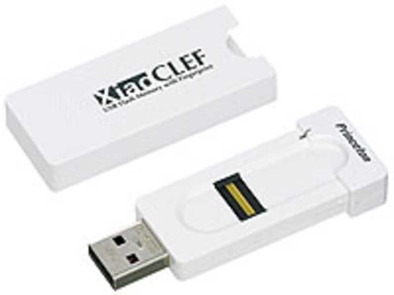 本体内のデータを盗難から守るUSBフラッシュメモリー。デバイスドライバーのインストールは不要。指紋認証でPCをロックから解除できる専用のスクリーンロックソフト、ファイルやフォルダーの暗号化ソフトを同こんしている。128MB、256MB、512MB、1GBモデルを用意しており、実売価格は128MBモデルが8800円、256MBモデルが1万2800円、256MBモデルが1万9800円、1GBモデルが2万9800円。