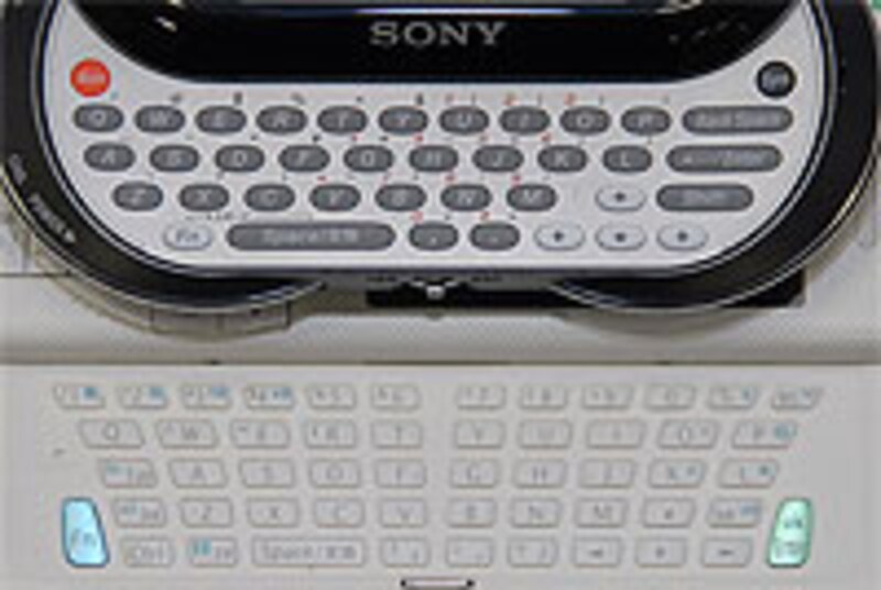 キーピッチは結構狭い。横の配列に関してはウィルコムのスマートフォン「W-ZERO3 [es]」よりも狭いほどだ(縦の配列はほぼ同程度)。キー配列はVAIO type Uのような格子状ではなく、デスクトップ用キーボードと同様に斜めになっている。キータッチが柔らかいこともあって、W-ZERO3 [es]より打ちやすい印象だ。ボタン数が少ないので数字や記号の入力は面倒だが、慣れてしまえば問題はない。推測変換機能も搭載するので、文章入力がスムースにできる。
