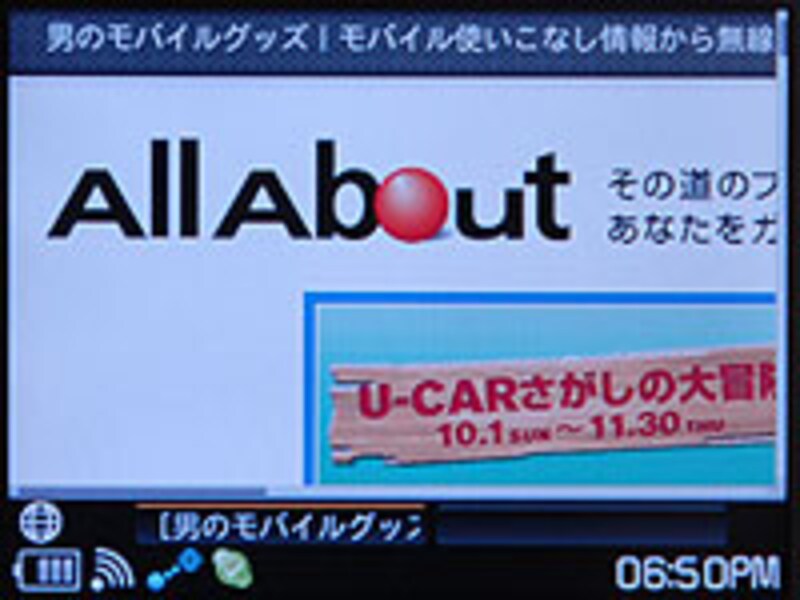 ブラウザーの操作は、本体右側にある十字ボタンやセンターボタン、キーボードのカーソルキーなどを使用する。センターボタンを押すとマウスのクリック、十字ボタンはカーソルキーと同じように動作する。Fnキーを押しながら十字ボタンを押せば、上下左右にスクロールできる。タッチパネル液晶のような直感的な操作に比べるとまどろっこしい部分もあるが、携帯電話のフルブラウザ機能に慣れたユーザーなら全く違和感なく使えるだろう。