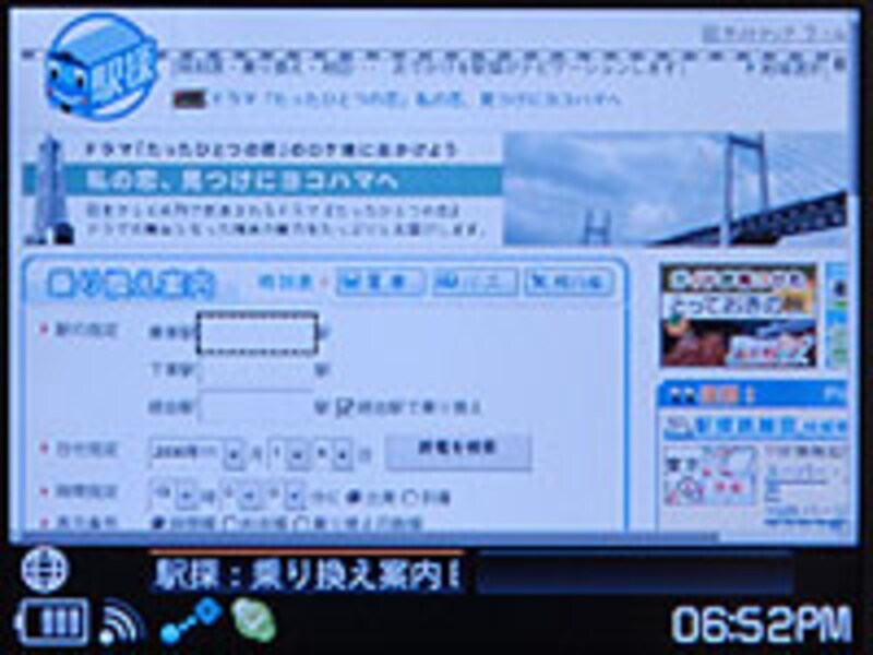 まずはWebブラウザー機能をチェックしていこう。ブラウザーソフトには「Opera」を採用しており、サイトデザインの再現性は高い。画面の幅に合わせて表示する機能や、画面全体を拡大・縮小表示する機能(50~150%まで対応)なども搭載しているため、解像度は決して高くないが快適に見られる。