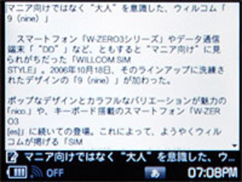 インターネットへの接続が可能でキーボード搭載となると、「メールの読み書きもしたい」と思うのが人情だろう。その点ではメール機能が内蔵されていないのが残念だ。今後のバージョンアップなどで対応してもらえれば魅力が倍増すると思うので、ぜひ可能であればお願いしたいところ。