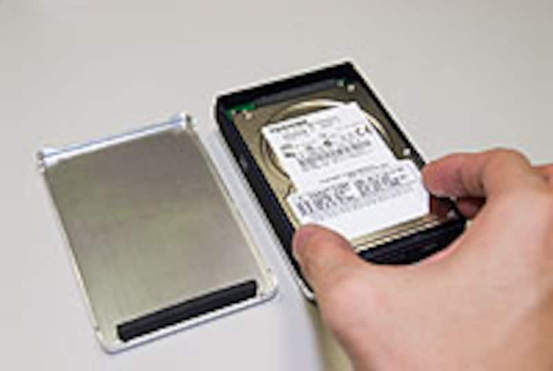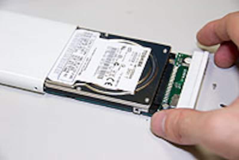 | Memory Bankのふたを外してHDDを差し込む | ねじ止めすれば組み立ては完了だ |