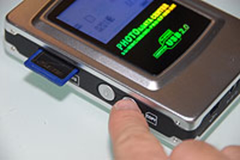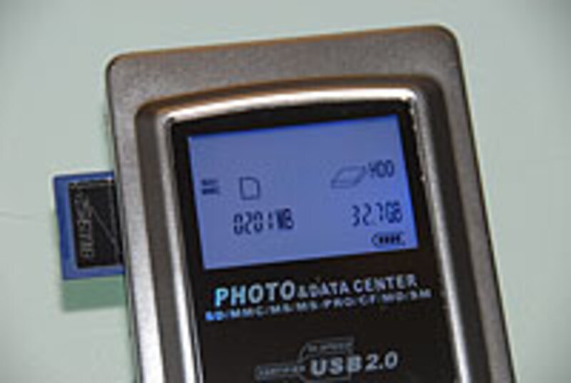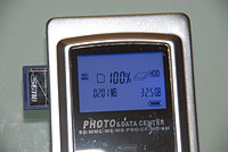 まずは筆者のSDカード(PQIの256MB SDカード「AE21-2560」。恐らく150倍速モデルだと思われる)を試してみた。201MBのデータをMemory BankのCFカードリーダーから直接バックアップしたところ、コピーは2分36秒で終了(平均速度は1.47MB/秒)。単純計算すると、2GBのデータをバックアップすれば25分ほどかかってしまう。ちなみに筆者のPCに内蔵のSDカードリーダーでMemory BankのHDDに同じデータをコピーしたところ、ほんの41秒で済んでしまった(平均速度は4.9MB/秒)。