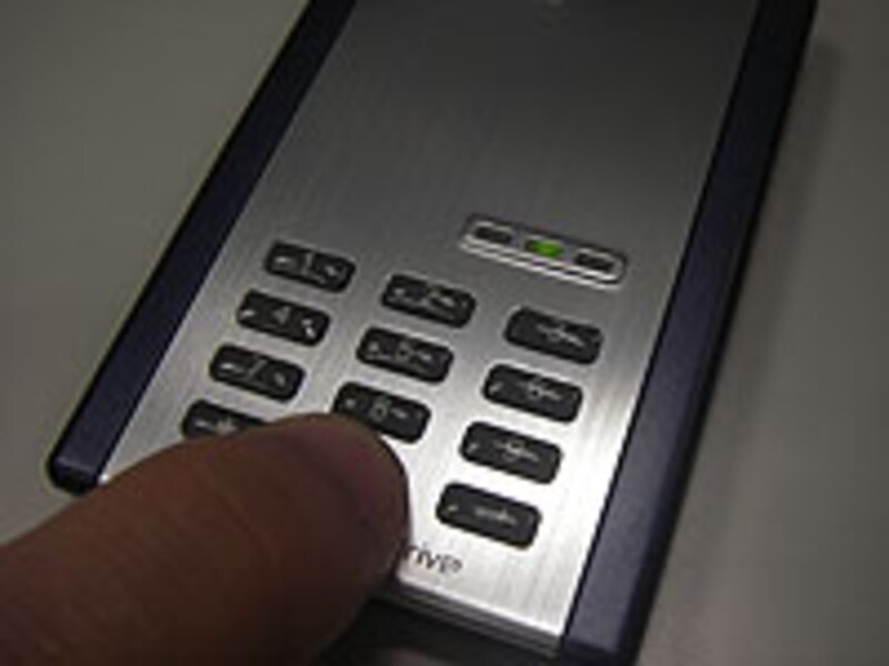 その特徴は本体上面にテンキーが付いている点にある。本体サイズはクレジットカードより一回り小さい高さ80×幅54×厚さ10mm。一般的なUSBメモリーに比べるとかなり大きいのは否めない。