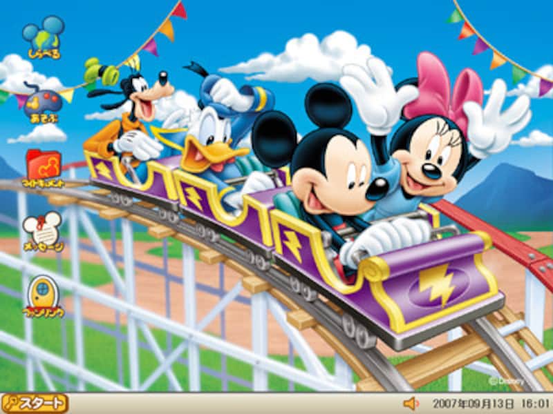 | ぱそこんキッズキーをUSB端子に挿入し、「キッズモード」を起動したところ (C) Disney |