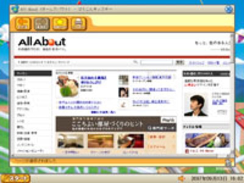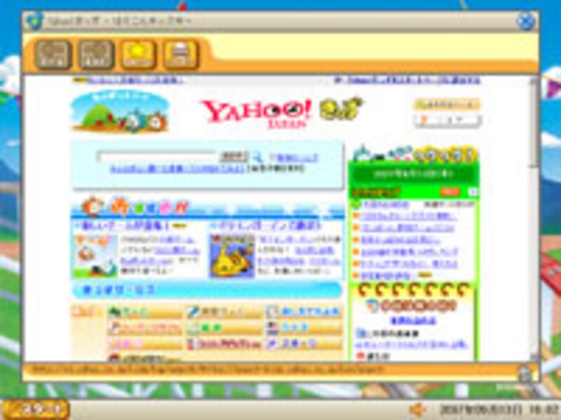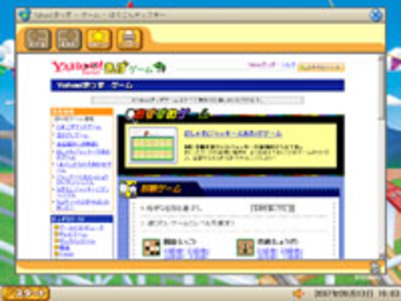 まあ要するに、共用のPCを子どもに安心して使わせるための周辺機器なのだが、この「俗世間からの離れっぷり」がなかなか楽しいのだ。設定を変更すればWebブラウザーで「Yahoo!きっず」以外のサイトに接続することもできるようになるし、アプリケーションも同様に使うことができる。「ぱそこんキッズキー」をUSB端子につなげば、汚れてしまった心を洗い流し、リフレッシュして明日からビジネスパーソンとして戦場に赴くことができる──かも。