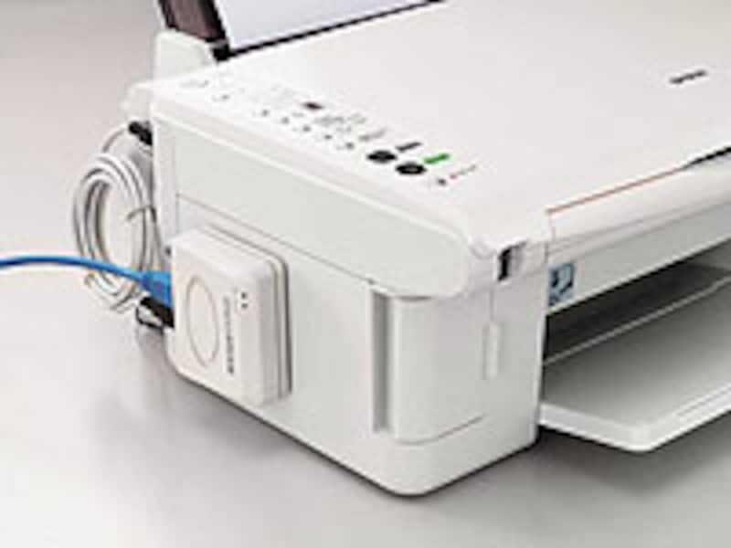 続いては、サードパーティのプリントサーバー機器を利用する方法だ。プリンターからUSBケーブルでプリントサーバーに接続すれば、ネットワーク対応プリンターとしてLAN上のPCから印刷が可能になる。有線LANタイプだけでなく無線LANタイプもある。