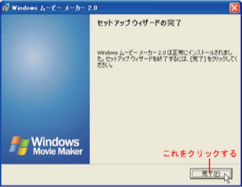 以上でインストールが終了しました。インストールが終了したら、いよいよムービーメーカー2を起動し、デジタルビデオカメラからの動画の取り込み、編集を行いましょう。