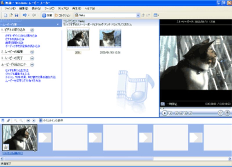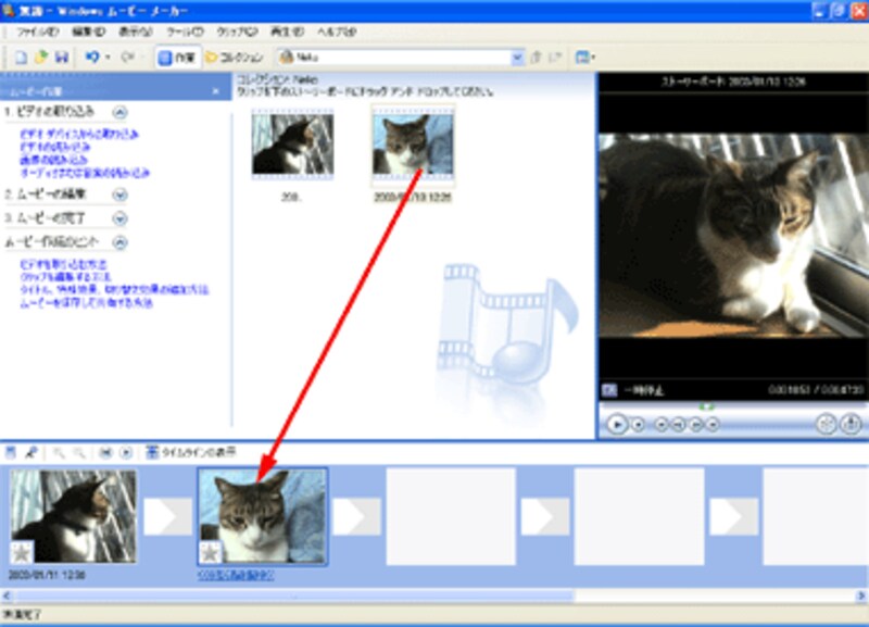 コレクションから、ビデオクリップをストーリーボードにビデオクリップをドラッグ&ドロップします。