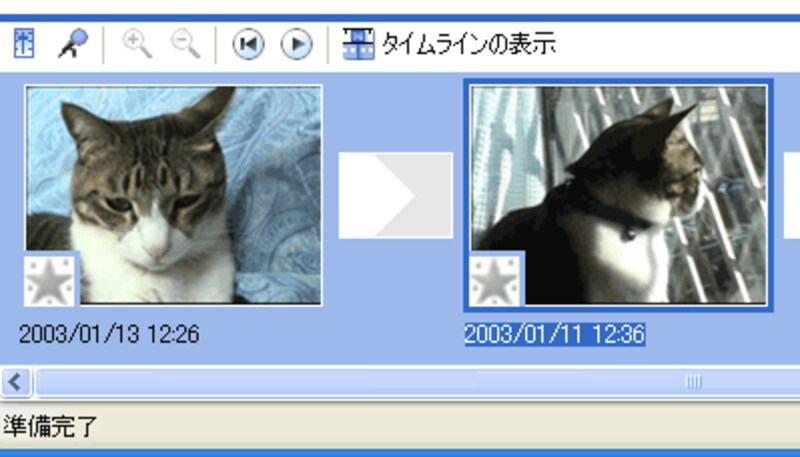 ストーリーボードに配置したビデオクリップは、左から右へという順番で再生されます。このとき、ストーリーボードでの配置位置を変更すると、再生される順番も変更されます。