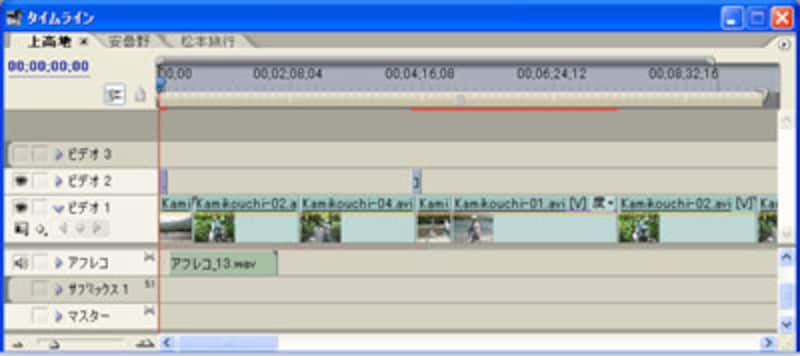 これまでのPremiereでは、1本のムービーを作成する際、タイムラインのウィンドウが1つしか表示されませんでした。これに対して、Premiere Proでは、1つのウィンドウの中に複数の「タイムライン」ウィンドウが表示できます。