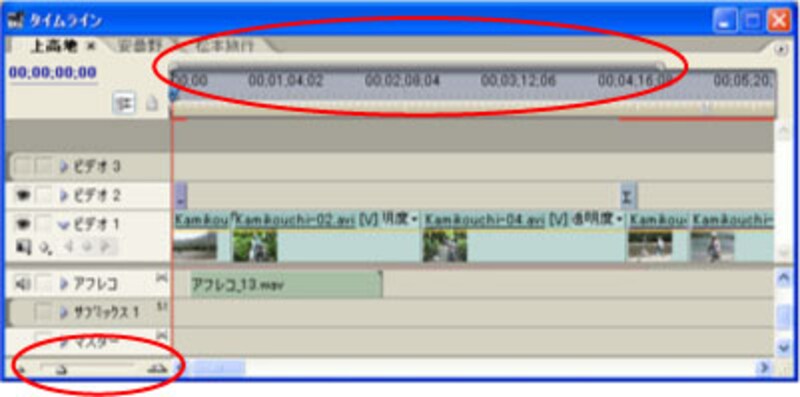 使い勝手としてはこれまでのPremiere以上のものがあるのですが、唯一使いずらくなったのが、タイムレベルの変更方法が変わったことでしょう。これまでのPremiereでは、ポップアップウィンドウから、1フレーム単位や1秒単位など、編集する際の時間の単位を選択できたのですが、Premiere Proからはこのポップアップウィンドウが無くなりました。代わりに、タイムレベルは「ズームスライダー」というものを利用して変更するのですが、1フレーム単位や4フレーム単位など、希望するタイムレベルにセットするのがかなり困難なのです。1フレーム単位で編集しようとしてもいつの間にか2,3フレーム単位になっていたりと、微妙な調整が難しいのです。ま、これは私ガイドだけかもしれませんが・・・。