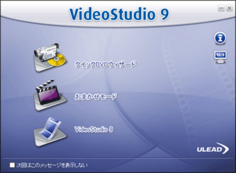 こうした盛りだくさんな新機能や機能強化を備えた「VideoStudio 9」ですが、この中からいくつかの機能を利用してみましょう。なお、次の画面が、「VideoStudio 9」のメニュー画面です。