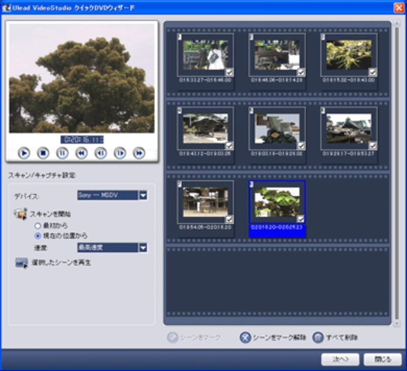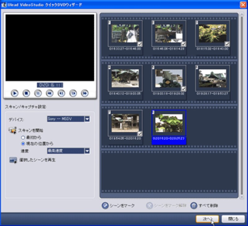 | ▲シーンごとにスキャンされるので、不要なシーンのマークを解除する |