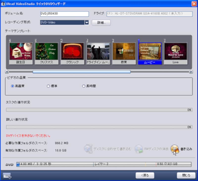 - 2ステップでオリジナルDVDを作成する「クイックDVDウィザード」