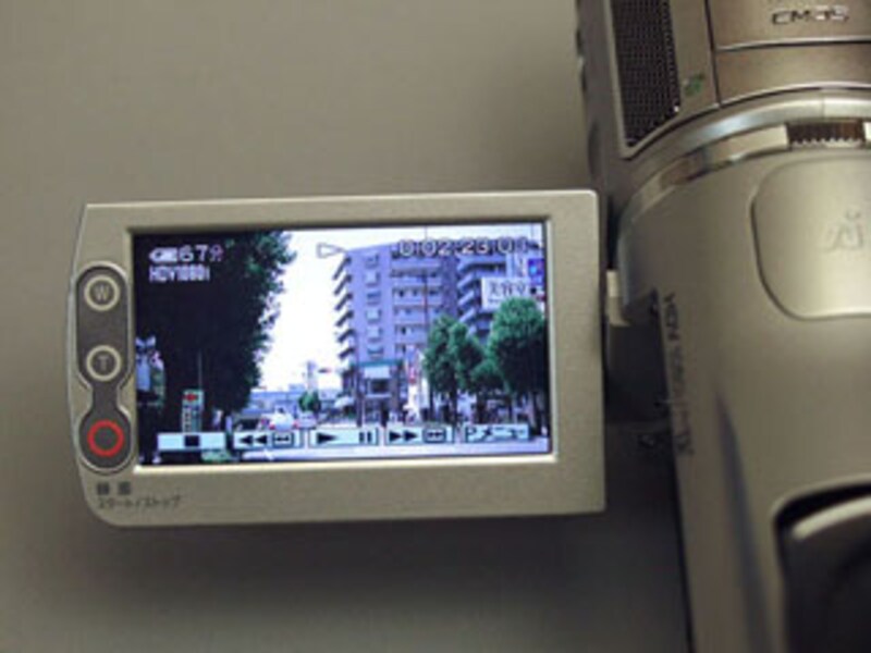 | ▲液晶パネルはタッチ式。操作性は、他のハンディカムと変わらない。 |