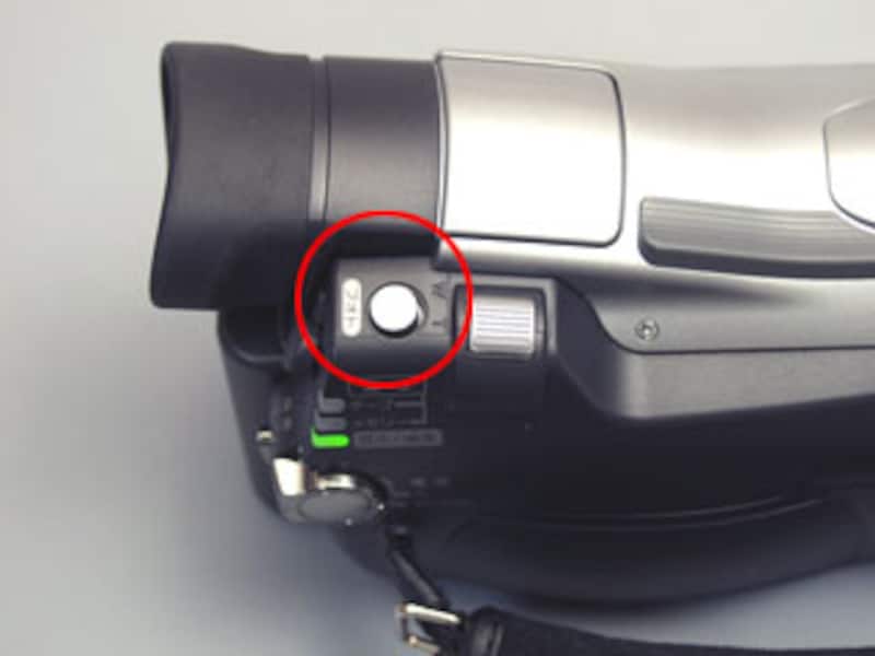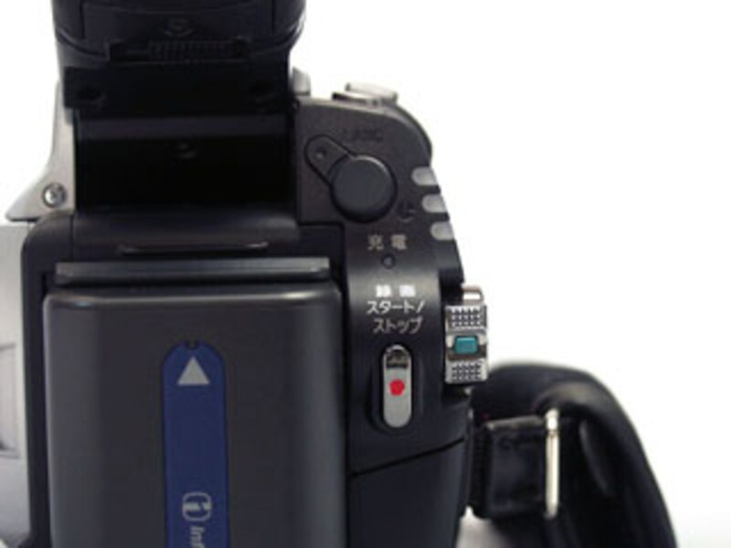 でも、撮影に関する操作についていえば、カメラをホールディングした親指で電源のON/OFFとモードの切替が行えるタイプ。スイッチを切り換えるごとに「テープへの録画→メモリーへの録画→再生」とモードが変わりますが、モードを示すランプは切り換えスイッチの上にあるので、確認がしやすいです。撮影のON/OFFも、親指で操作。