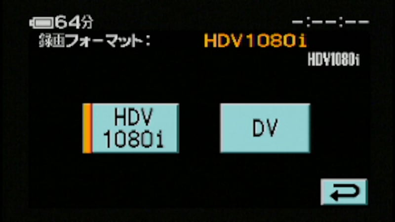 | ▲録画フォーマットで、HDVとDVとを切り換える。 |