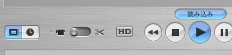 iMovie HDでHDV編集を行うには、なんの準備も必要ありません。単純に、HC1とMac miniとをIEEE1394ケーブルで接続するだけです。あとは、DV編集のときと同じようにiMovie HDへ取り込むために、[読み込み]ボタンをクリックするだけでした。ただ、1つだけDV編集とは違う点がありました。それが、取り込みの速度なのです。あとは、プレビュー画面の表示がワイド対応になっていることぐらいでしょうか。