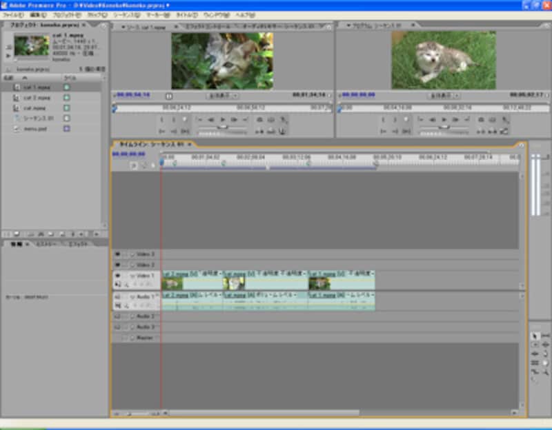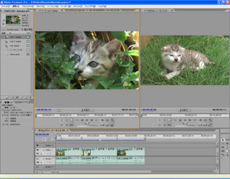 ユーザーインターフェイスも大きく変更され、「ドッキング・インターフェイス」という機能が搭載されています。これはすでに発表されている「Premiere Elements 2.0」で採用されたインターフェイスですが、ビデオ編集では、プロジェクトウィンドやモニタウィンドウ、タイムラインウィンドウなどいくつものウィンドウを開き、それらが重なり合って作業しづらいのが常でした。