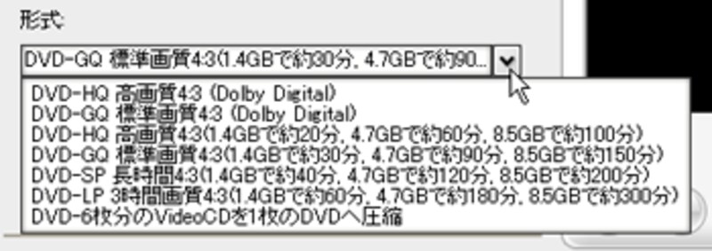 これからどのようなタイプのディスクを作成するのかを選択するダイアログボックスが表示されるので、DVDレコーダにブランクのメディアをセットしてください。ダイアログボックスで、どのタイプのディスクを作成するかを選択します。
