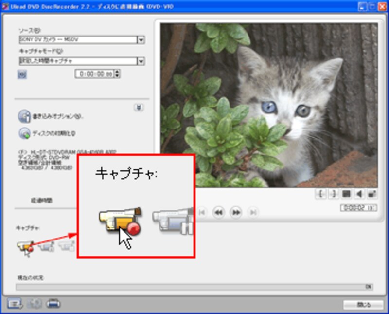 | ▲「キャプチャ」ボタンをクリックする。 |
