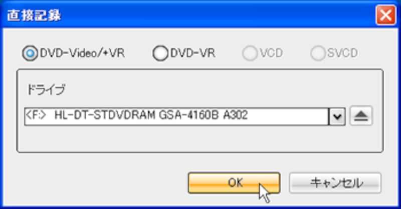 | ▲とても心強いネーミングの「ディスクに直接録画」を選択する。 |