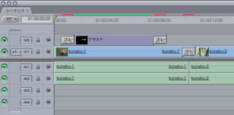 | ▲タイトル文字をオーバーレイで配置したときのタイムライン。 |