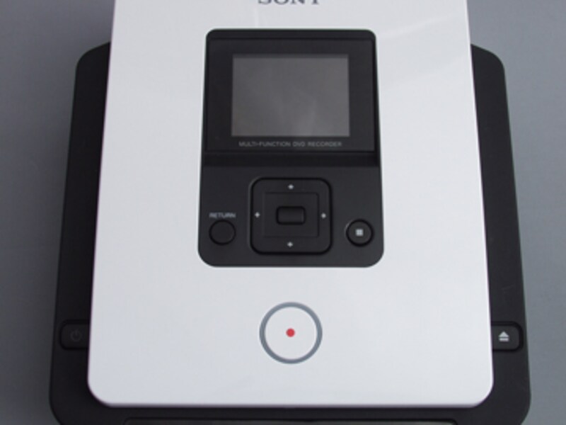 VRD-MC5がパソコンなしでビデオカメラからの映像をダビングできるのは、VRD-MC5自身にダビングプログラムが搭載されていて、保体上面にある2.5型モニターでプログラムを操作します。ここでは、VRD-MC5の各種設定やダビング方法の選択、RWメディアの初期化、作成したDVDのプレビューなど、ダビング作業に必要な操作をすべて行うことができます。