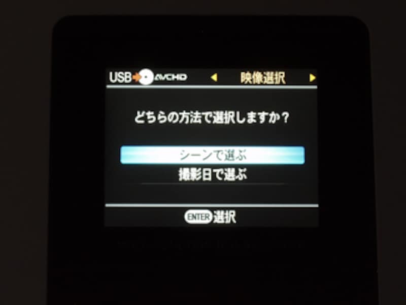 | ▲たとえば、「シーン選択」では、だビングしたいシーンを選択できる |