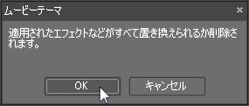 「完了」ボタンをクリックすると、テーマがビデオクリップに適用されます。適用を確認するメッセージが表示されるので、「OK」ボタンをクリックしてください。
