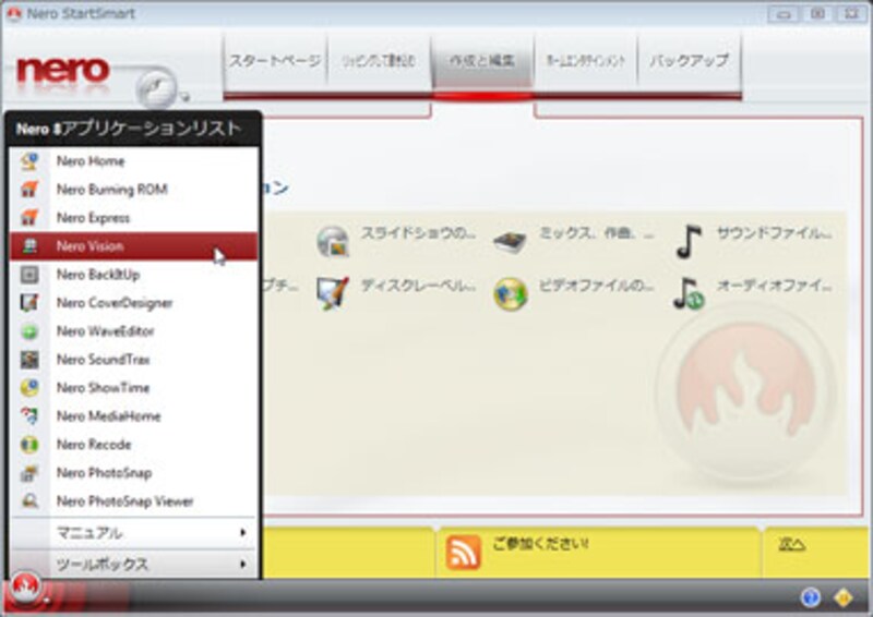 | ▲nero8を構成する各ツールに、ダイレクトにアクセスすることも可能。慣れてくると、こちらからの操作がメインになるかも。 |