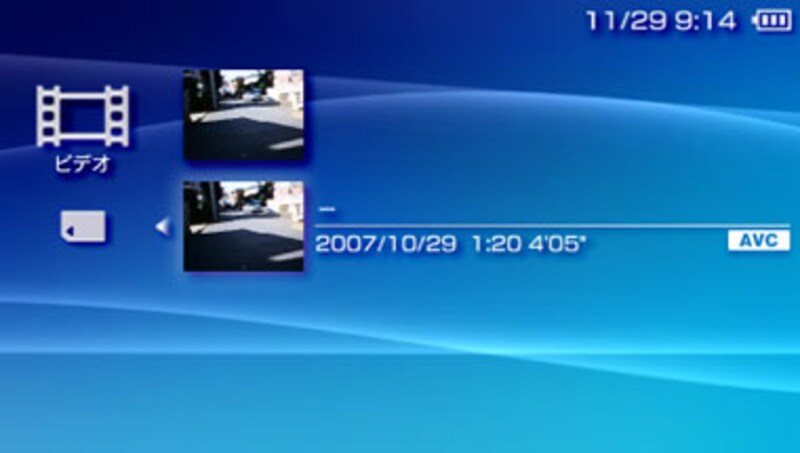 書き込みが終了したら、PSPとパソコンの接続を解除し、PSPで再生してみましょう。サムネイルもきちんと作成されています。