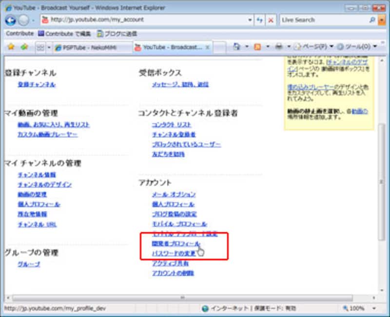 PSPTubeを利用するには、YouTubeから開発者用IDというものを取得しておかなければなりません。このIDは、YouTubeの「マイ アカウント」ページで取得します。