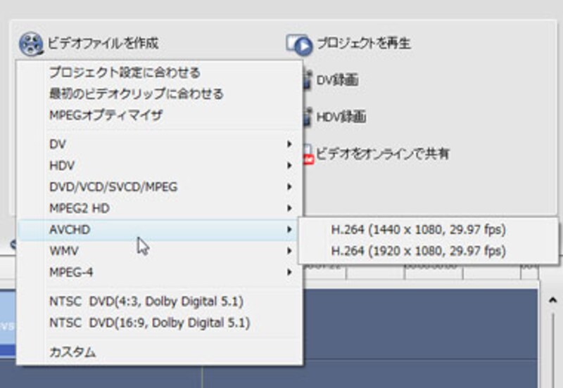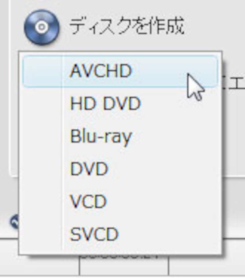 | ▲作成するディスクのタイプを選択できる。AVCHDのほか、HD DVDやBlu-rayが選択できる。 |