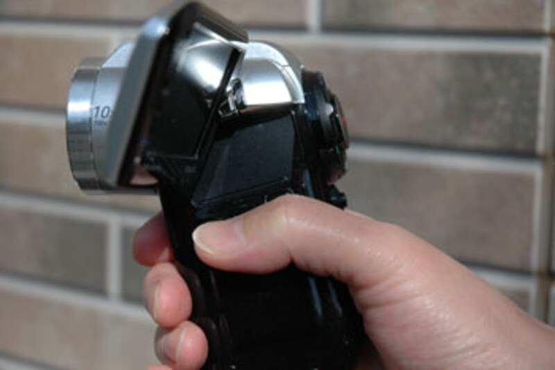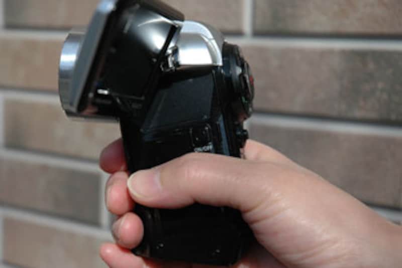 | ▲電源スイッチは、ちょうど親指の第一関節部分に当たる |