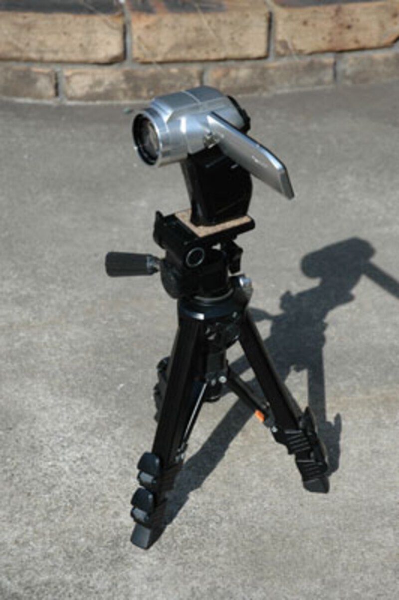 HD1000は、レンズとグリップに角度のついたスタイルが独特です。これを「新エルゴノミクスデザイン」といい、手首に負担の掛からない人間工学に基づいたデザインだとか。そのため三脚の使用が難しいのではと思ったのですが、従来のエルゴノミクススタイルを進化させたデザインで、三脚を利用してもレンズが水平に保たれます。これによって、今まで以上に記録できる範囲が広がりました。