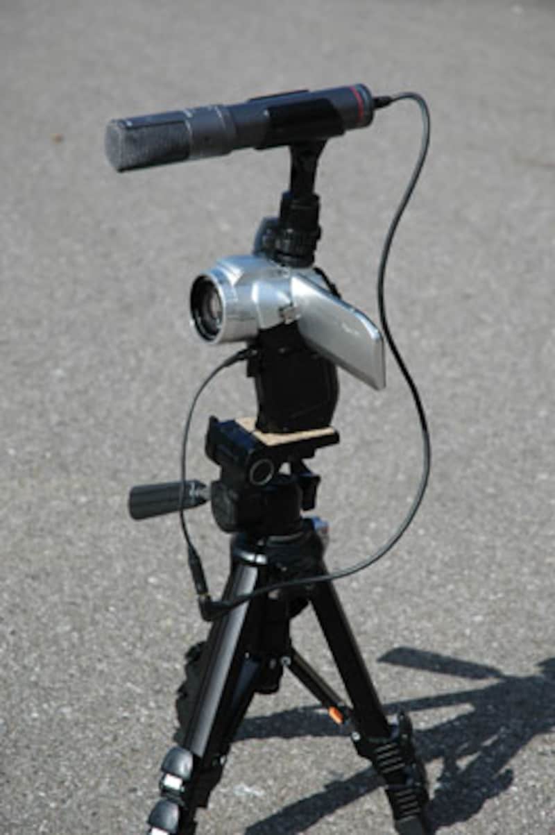 | ▲市販のステレオマイクも利用できる。 なお、3.5mmのminiジャックを2.5mmのminiジャックに変換するケーブルが付属している |
