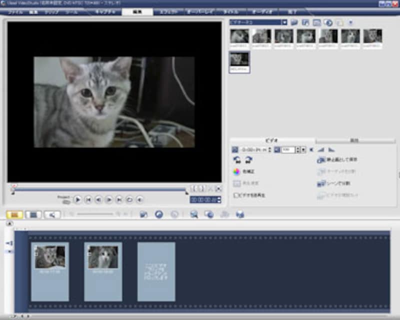 ハイビジョン対応のビデオカメラからVideoStudio 11でキャプチャした映像は、ストーリーボードに配置します。ここで、トリミングなどのカット編集を済ませておきます。