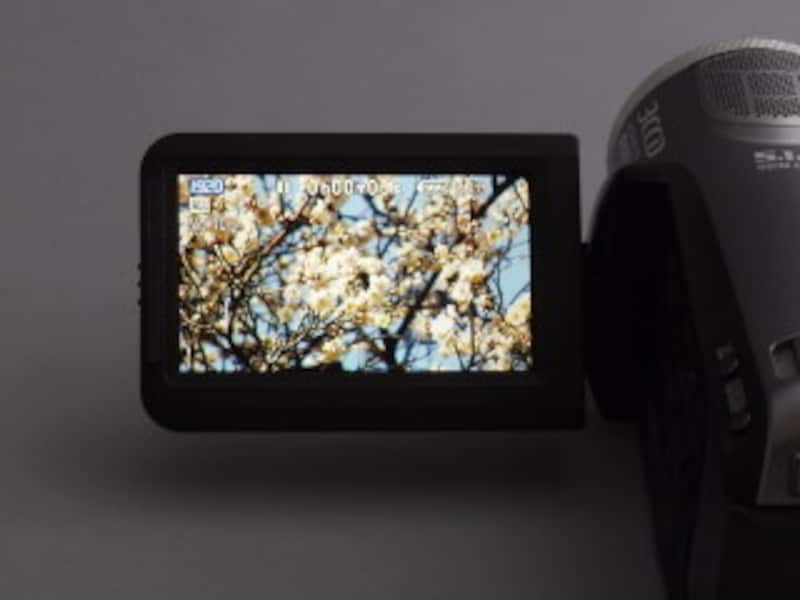 2.7型の液晶モニターも映像がきれいで非常に見やすく、日光下でもはっきりと映像を確認できます。ただ1つ要求したいことがあるとすれば、設定メニューの操作でしょうか。液晶モニターはタッチパネル対応ではないので、本体横のメニューボタンで表示し、「十字キー」と呼ばれるボタンで選択操作します。