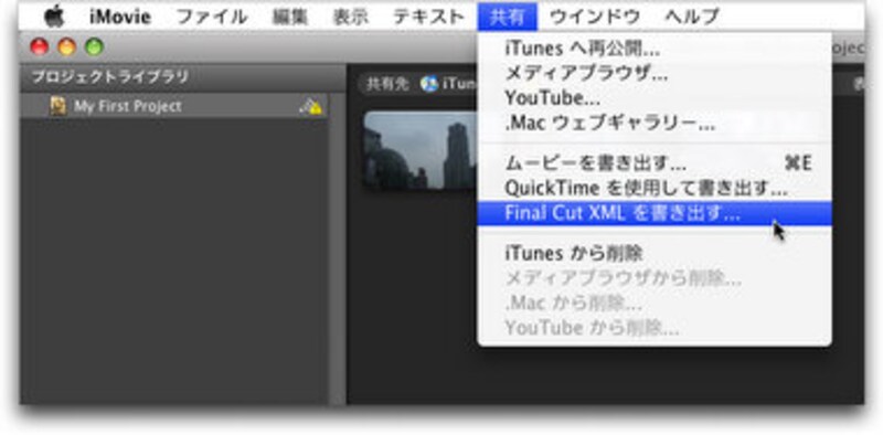 | ▲iMovieからプロジェクトをXMLファイルとして出力する。 |