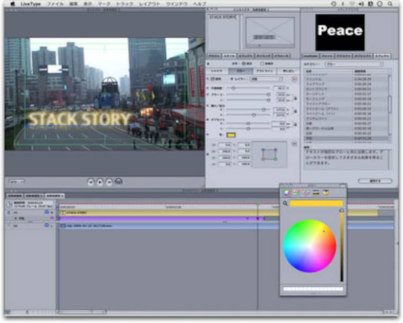 Final Cut Express 4で注目したいのが、「LiveType」。Final Cut Proに付属しているアニメーションタイトル作成アプリケーションなのですが、CMのタイトル作りに利用されているほど高機能なのです。これだけのためにFinal Cut Express 4を購入してもよいのではないかと思えるほどです。