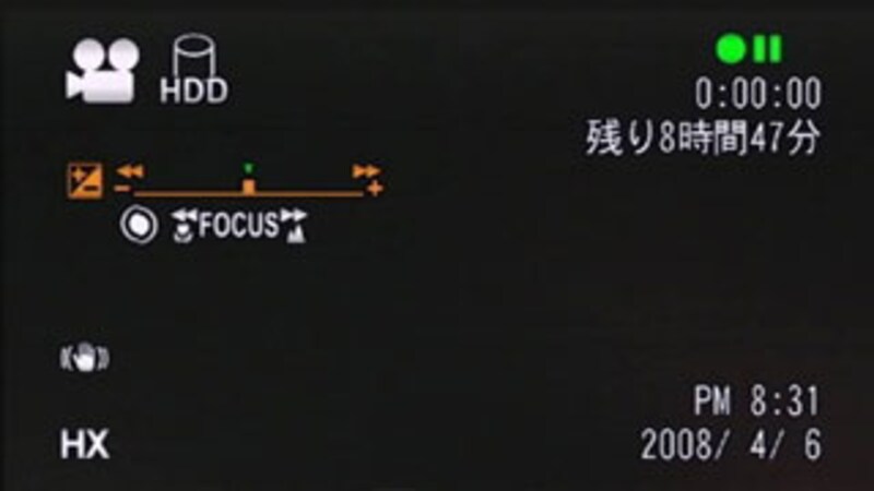 | ▲モードを「動画」に設定し、記録先をHDDに設定する。 |
