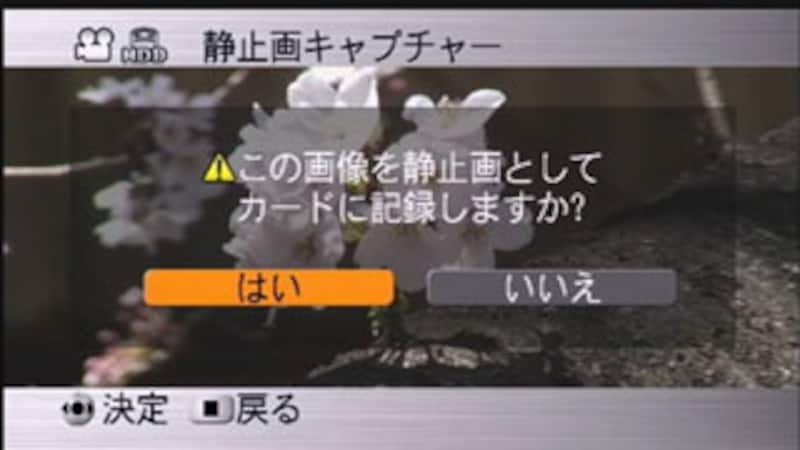 | ▲静止画キャプチャを行うメニュー表示。 |