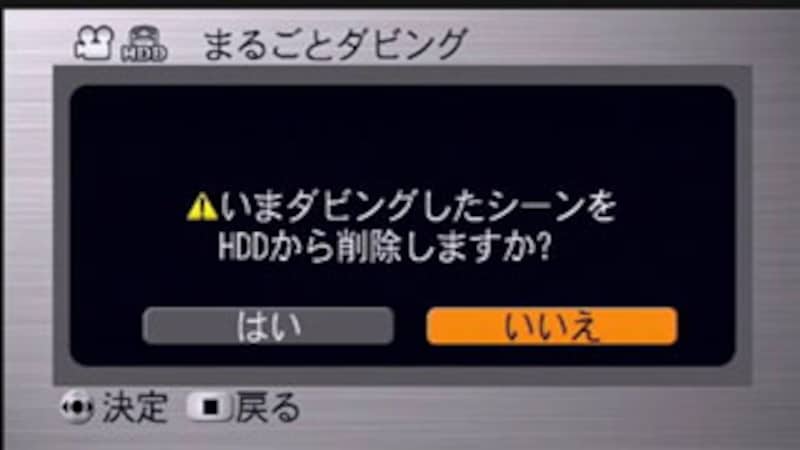| ▲ダビングを終えたら、映像をHDDから削除することも可能だ。 |