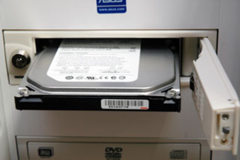 ただ、パソコン用の3.5インチHDDも低価格化の方向にあり、HDDを保存先として利用する場合、HDDを交換するという方法があります。たとえば、ガイドは写真にあるような、デスクトップのHDDを交換して利用できる周辺機器を利用しています。裸のハードディスクを、まるでDVDメディアを交換するように入れ替えて利用できるので、ハイビジョン映像の保存先として利用しています。