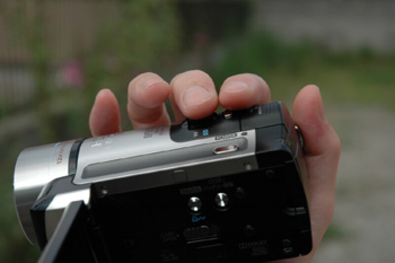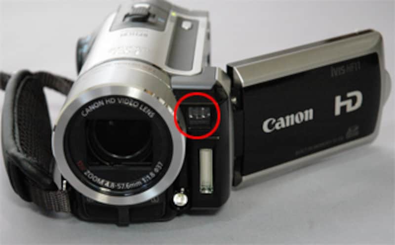 画質では文句の付けようのないHF11ですが、実際に撮影していて、ちょっと気になった部分があります。それがズーム操作なのです。HF11の場合、外部マイクやライトを取り付ける「Mini Shoe」がお尻の部分に設定されています。そのためか、カメラグリップに手を通して本体を自然に握ると、ズーム操作のレバーの位置が、人差し指の位置よりほんのちょっと前にあるのです。