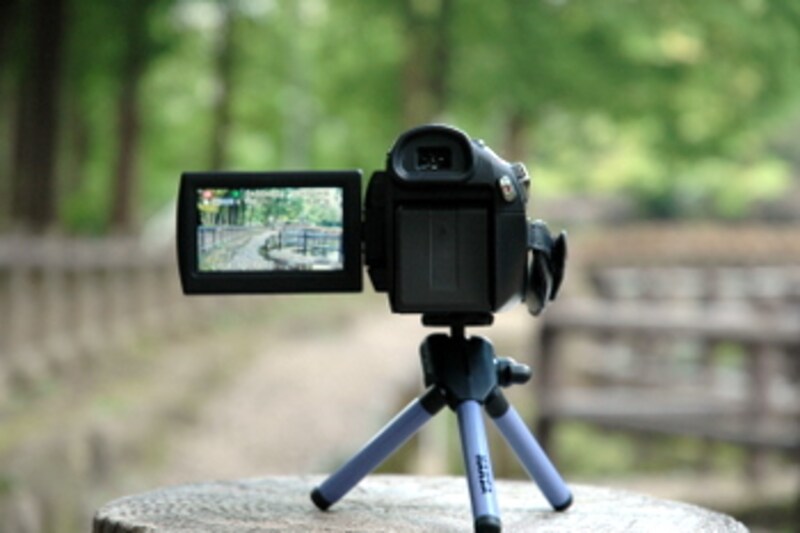 さっそく、SD100を持って近所の公園に撮影に出掛けてみました。持ち出したものは、ビデオカメラが小型・軽量なので、デジカメ用のミニ三脚だけ。通常の撮影なら、これだけで十分ですが、本来なら予備バッテリーがもう1個は欲しいところ。同梱バッテリーでの撮影時間は、カタログでは実撮影時間が約1時間。実際に、電源のON/OFFを繰り返しながら使ったところ、実撮影時間は約30分といったところでした。なので、できれば予備バッテリーもカメラと同時に購入しておきたいところです。